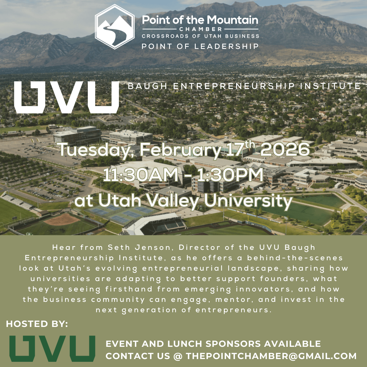 Events available for Registration... Membership Engagement Event - Speed Networking 2/11/2026 register for this event... Point of Leadership - UVU Entrepeneurship Institute 2/17/2026 register for this event... |